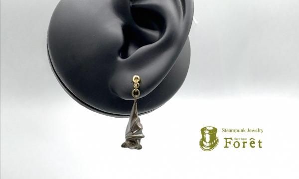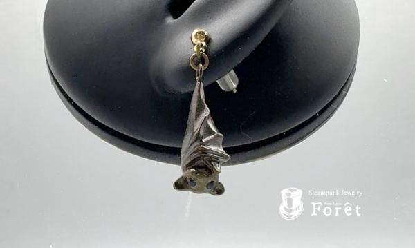 目がクリっとしたかわいいコウモリのピアスとイヤリングです。
