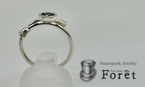 トルマリンを六角ナットにセットしたフリーサイズ(約10号〜20号)の指輪です。