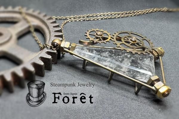 連動して回る歯車付きのトルマリン・イン・クォーツネジ留めのペンダントトップになります。【鑑別書付】